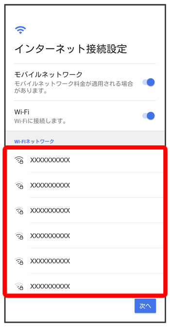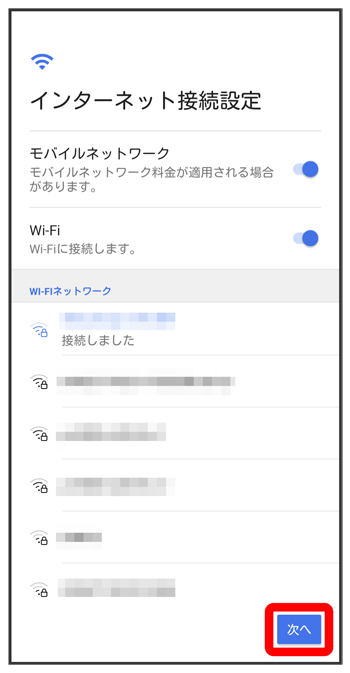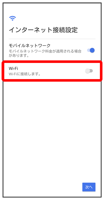 - Wi-Fi設定を省略するときは、をタップし、手順