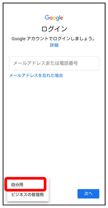 - ビジネスの管理用のアカウントを作成する場合は、をタップし、画面に従って操作してください。
