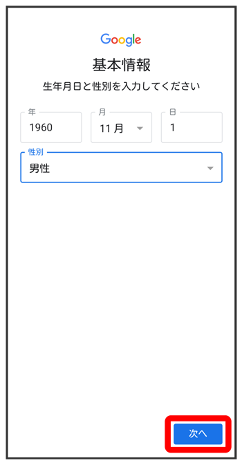 生年月日と性別を入力