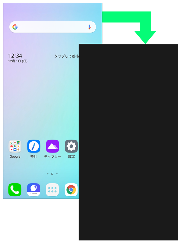 - 画面点灯時に電源キーを押すと、手動で画面ロック状態にすることができます。