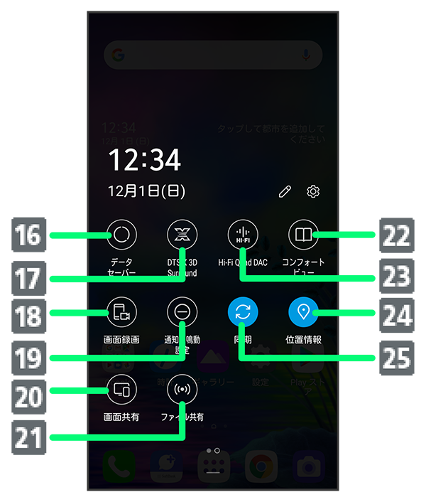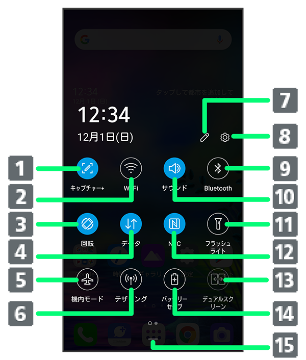 クイック設定パネルの見かた