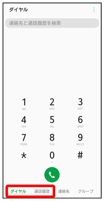 「ダイヤル」タブ/「通話履歴」タブをタップ