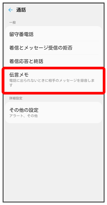 伝言メモ設定画面で応答時間を設定- 電話着信時に、設定した伝言メモの応答時間が経過する前に着信が切断されてしまう場合は、伝言メモの応答時間を短く設定してください。待ち時間の短いサービスが優先されるため、転送電話サービス/留守番電話サービスの待ち時間を長く設定してください。それでも症状が改善されない場合は、転送電話サービス/留守番電話サービスの利用を停止してください。転送電話サービス/留守番電話サービスについて詳しくは、「転送電話サービスを利用する」、「留守番電話サービスを利用する」を参照してください。
