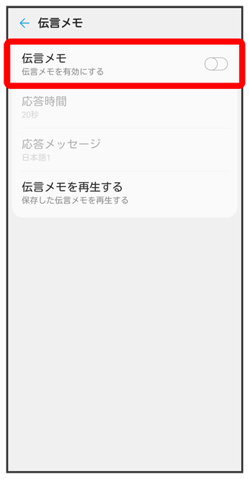 をタップすると、応答メッセージを確認できます。- 伝言メモが有効のときに設定できます。