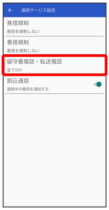 留守番電話・転送電話設定画面が表示されます。