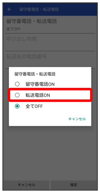 留守番電話・転送電話設定画面で/