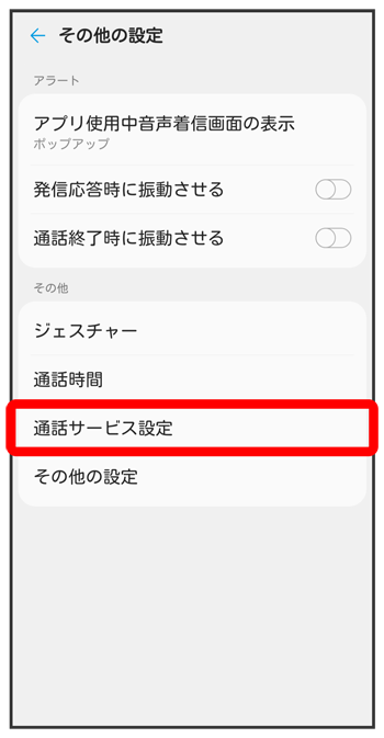 通話サービス設定画面が表示されます。