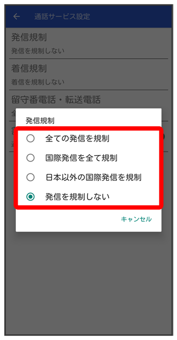 発着信規制サービスが設定されます。