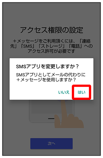 - をタップした場合は、SMS/S!メールのみの利用となり、+メッセージは利用できません。