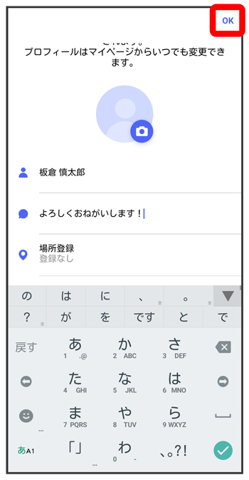 - 設定せずにをタップして、あとで設定することもできます。詳しくは「プロフィールを編集する」を参照してください。