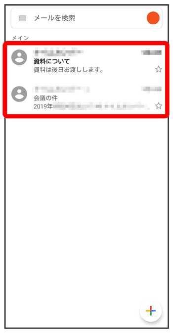 メール一覧画面で未読にするメールをロングタッチメールを削除する