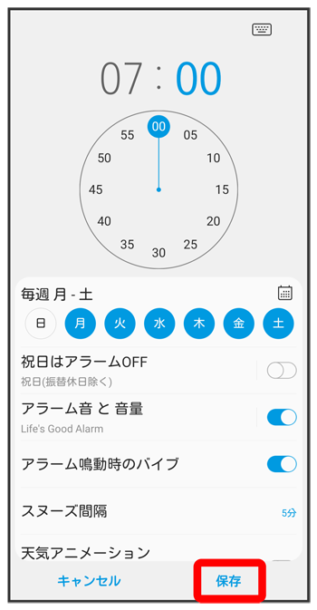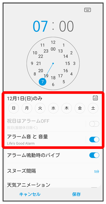 アラーム設定時刻になると、アラーム音や振動でお知らせします。