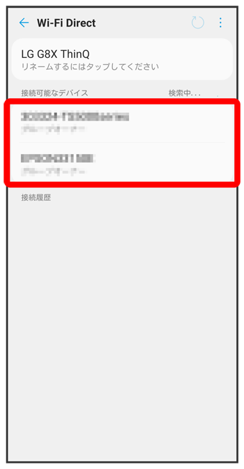 - 「接続可能なデバイス」欄に、近くにあるWi-Fi Direct機器が表示されます。