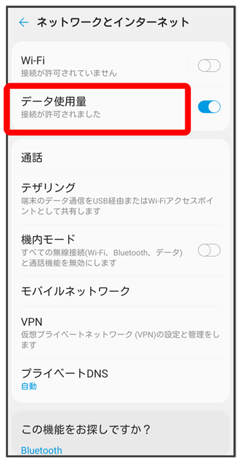 モバイルデータ通信の使用量を確認したり、使用を制限することができます。
