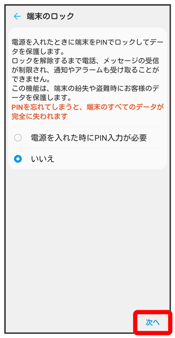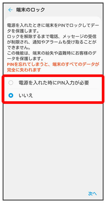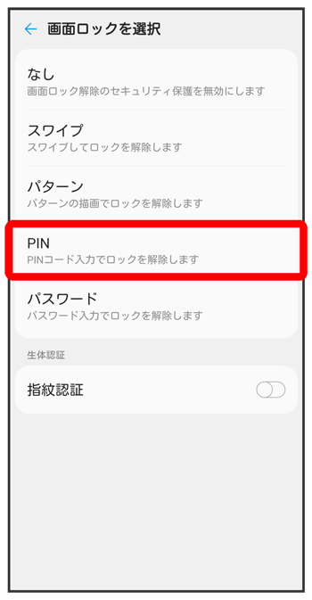 PINで画面ロックを解除するように設定する