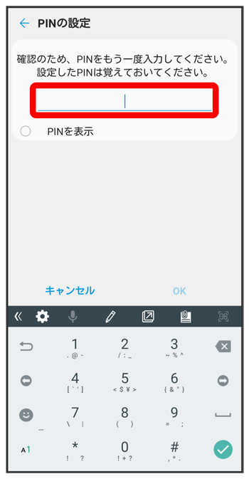 新しいPINを再度入力