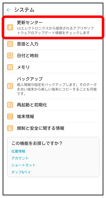 バージョンアップが必要なときは、通知が表示されます。通知をタップし、画面に従って操作してください。通知が表示されない場合などは、次の手順でアップデートできます。