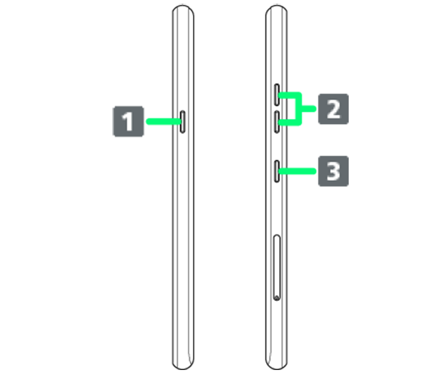 | 電源キー | 画面の消灯/点灯に使用します。 電源キーを長押しすると、機内モードの設定/解除、電源を入れる/切る、再起動を行えます。電源キーを2回押して、カメラを起動させるショートカットキーとして使うこともできます。 |