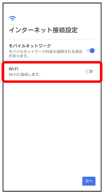 - Wi-Fi設定を省略するときは、をタップし、手順