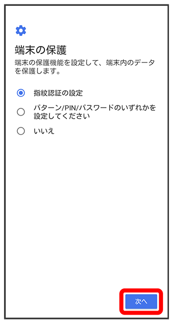画面ロックの解除方法を選択