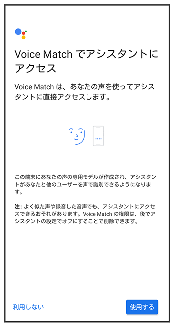 画面の指示に従って、Google アシスタントを設定