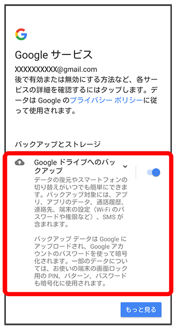 画面の指示に従って、Google アカウントを設定