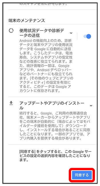 Googleサービス設定画面で利用するサービスを選択