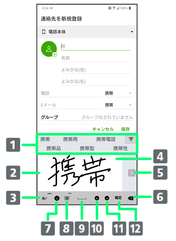 手書き入力キーボード画面の見かた