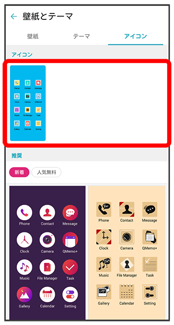 ホーム画面やランチャー画面に表示されるアイコンを変更できます。
