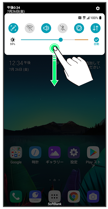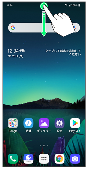 をタップ、または、ステータスバーを2本指で下にドラッグしても、クイック設定パネルを表示できます。