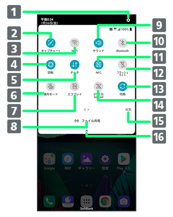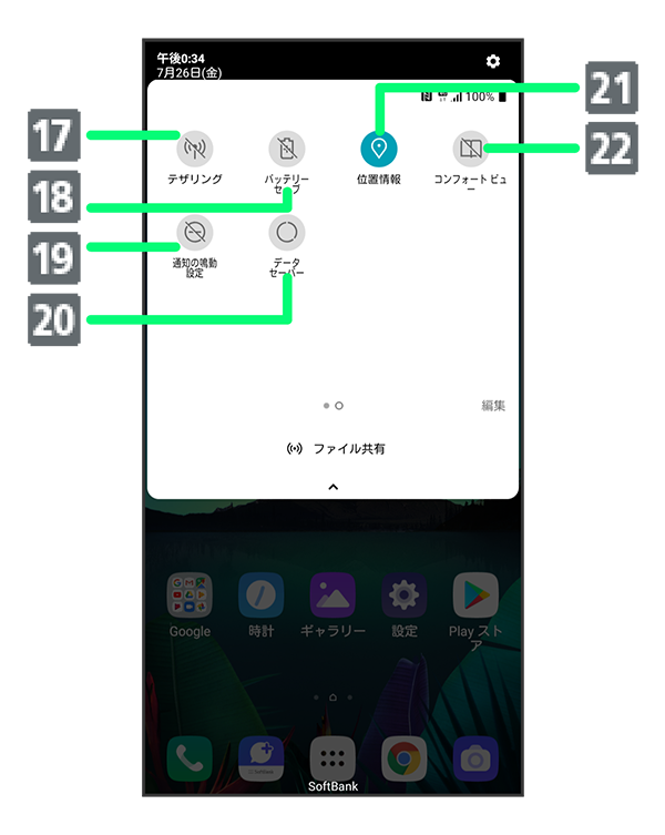 クイック設定パネルの見かた