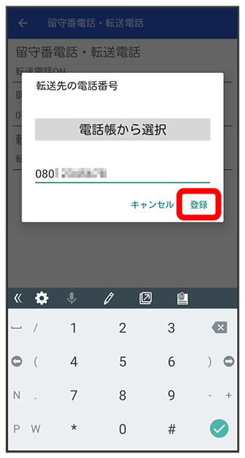 - をタップすると、連絡先から転送先の電話番号を選択できます。
