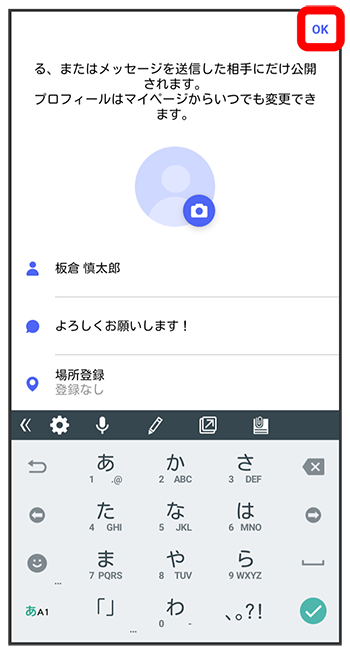 - 設定せずにをタップして、あとで設定することもできます。詳しくは「プロフィールを編集する」を参照してください。