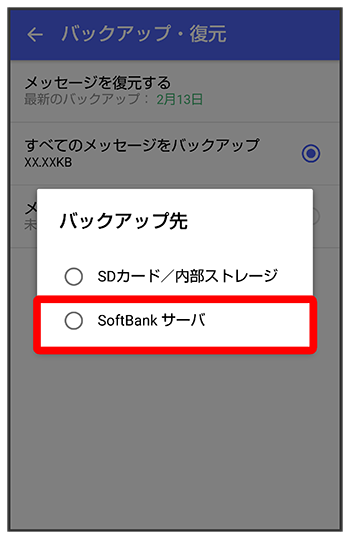 - をタップしたときは、バックアップしたいメッセージを選択と操作してください。