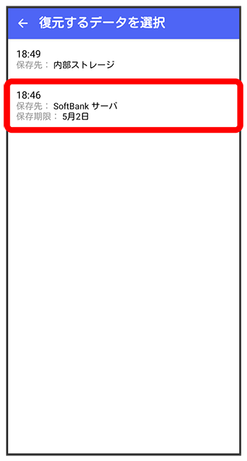 サーバーにバックアップしたデータを選択