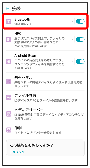 Bluetooth®設定画面でペア設定した機器の- をタップするたびにON(
