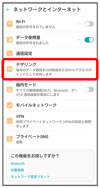 Wi-Fiテザリング機能を利用する