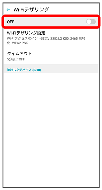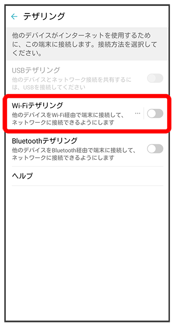 Wi-Fiテザリング画面が表示されます。
