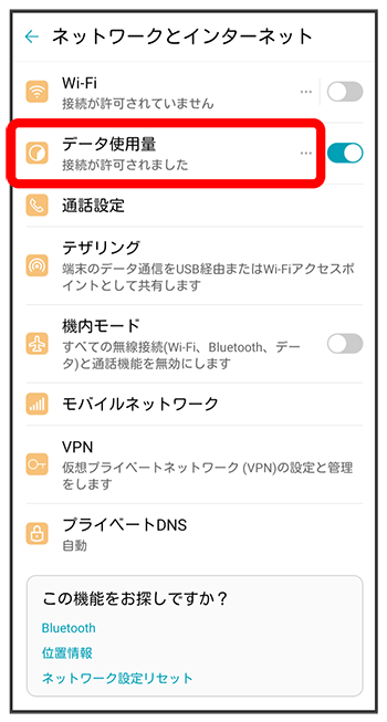 モバイルデータ通信の使用量を確認したり、使用を制限することができます。