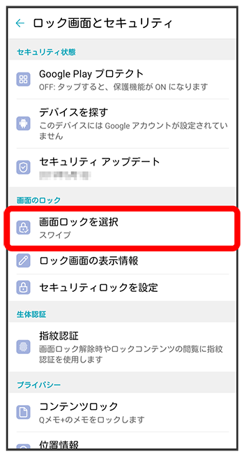 - 変更前の画面ロック解除方法がまたは以外のときは、をタップしたあとロックを解除する操作が必要です。