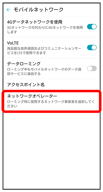 選択した通信事業者が設定されます。