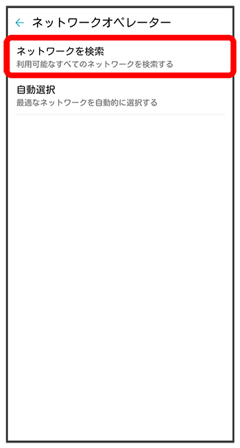- 適切な通信事業者に自動的に接続する場合は、通信事業者画面でをタップします。