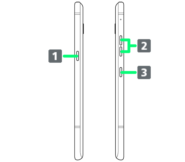 | 電源キー | 画面の消灯/点灯に使用します。 電源キーを長押しすると、電源を入れる/切る、再起動を行えます。電源キーを2回押して、カメラを起動させるショートカットキーとして使うこともできます。 |