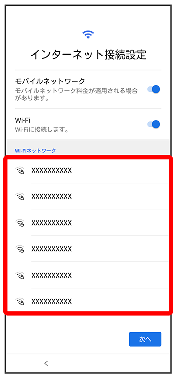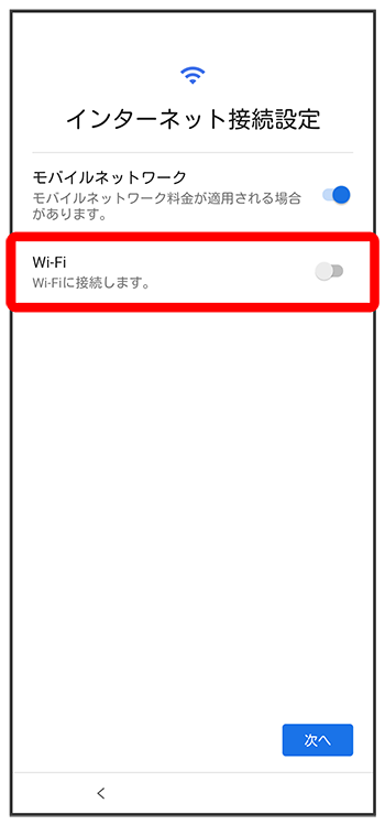 - Wi-Fi設定を省略するときは、をタップし、手順
