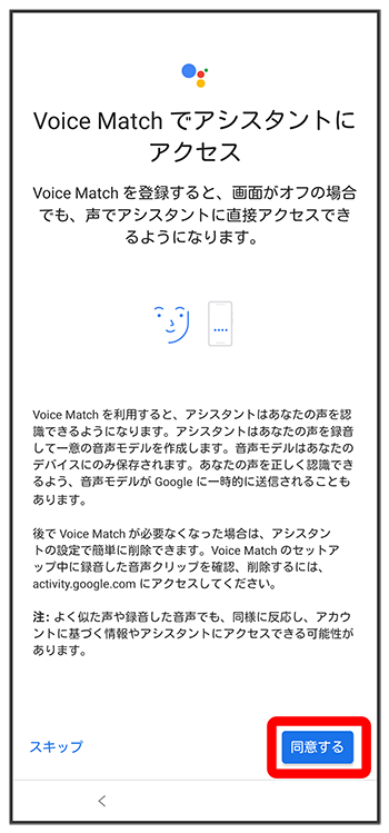画面の指示に従って、Voice Matchでアシスタントにアクセスを設定