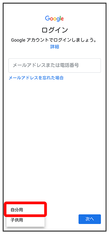 - 子供用のアカウントを作成する場合は、をタップし、画面に従って操作してください。