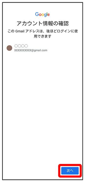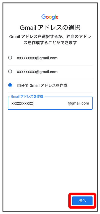 Gmail アドレスを選択するかユーザー名(メールアドレス)を入力