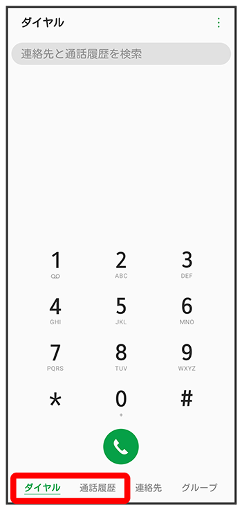 「ダイヤル」タブ/「通話履歴」タブをタップ