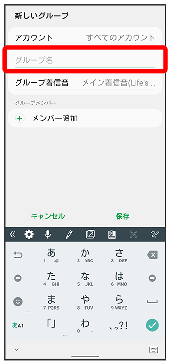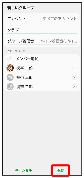 - 既に登録されているグループ名(「緊急連絡先」/「家族」/「同僚」/「友達」)は編集できません。