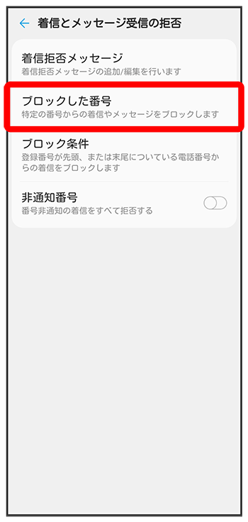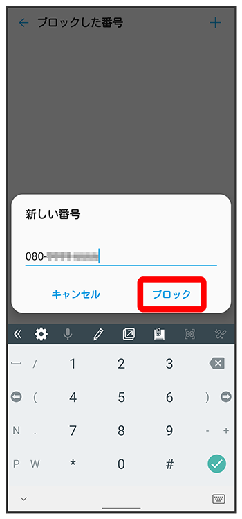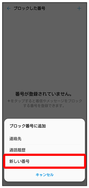 ブロックする相手の番号を手動で入力する方法を例に説明します。